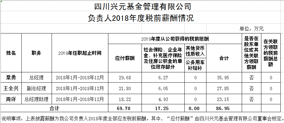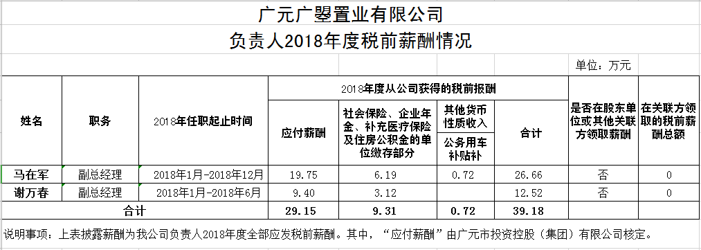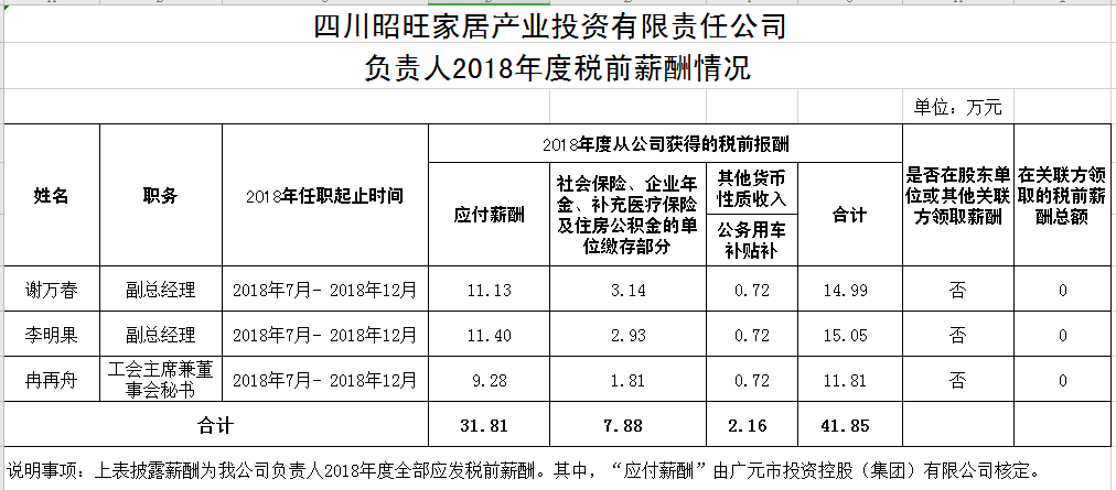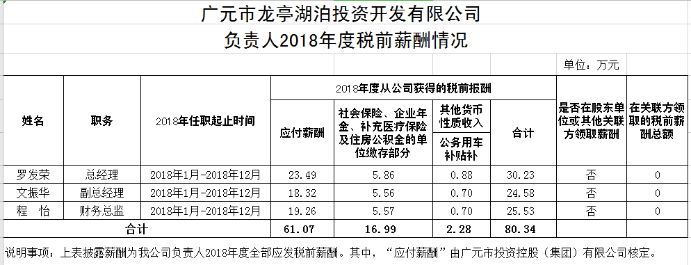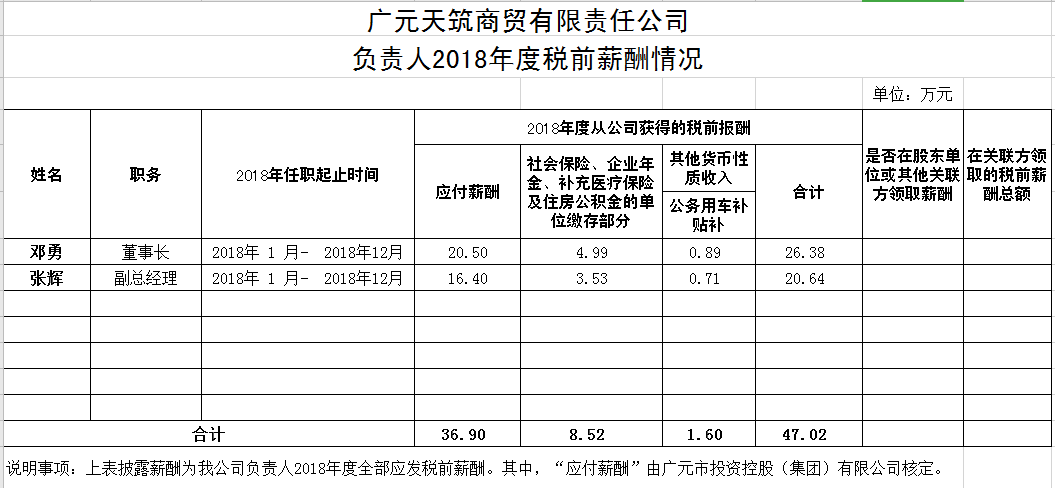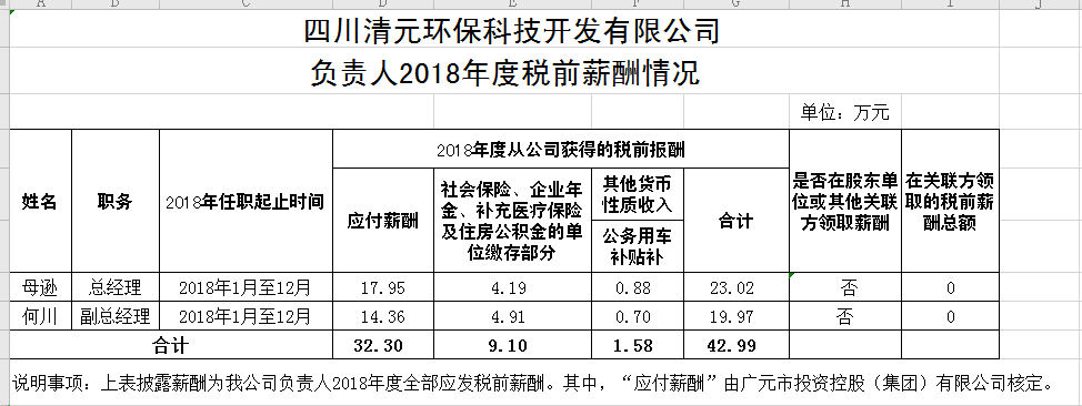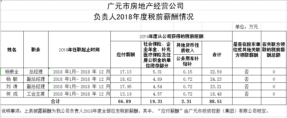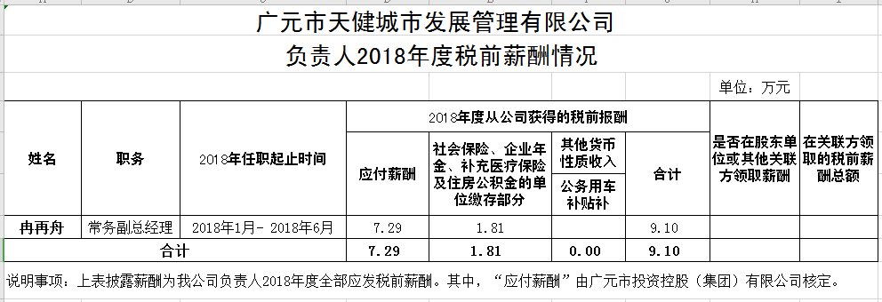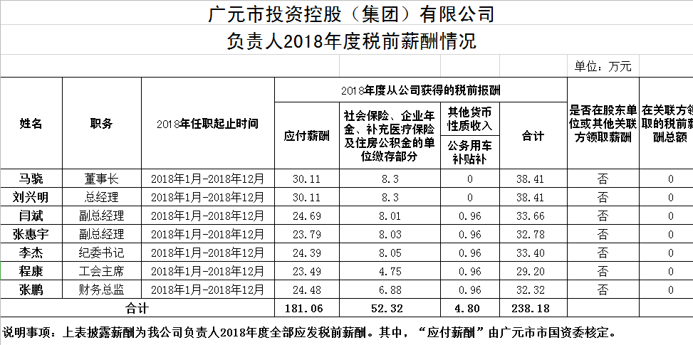 廣元市投資控股(集團(tuán))有限公司負(fù)責(zé)人2018年薪酬信息披露