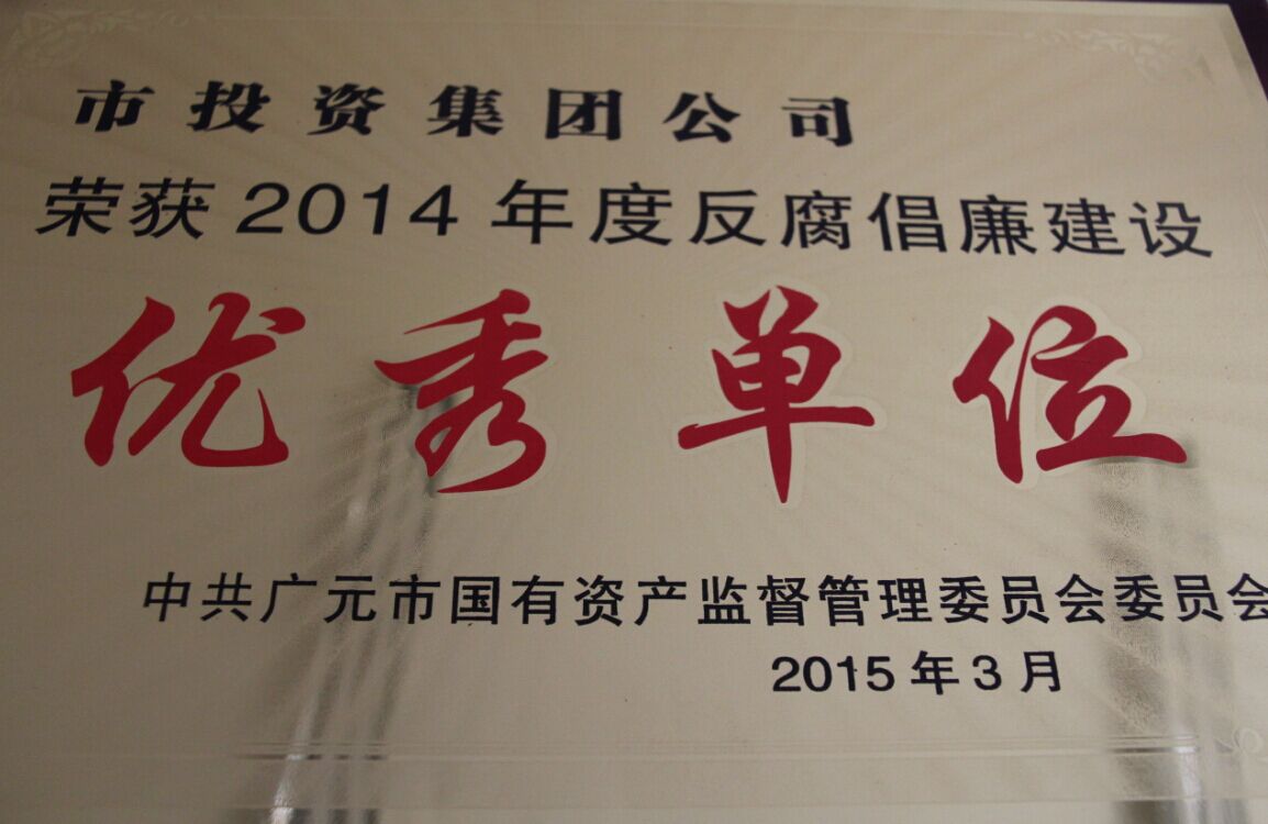 市投資集團(tuán)榮獲“反腐倡廉建設(shè)優(yōu)秀單位”榮譽(yù)稱號(hào)